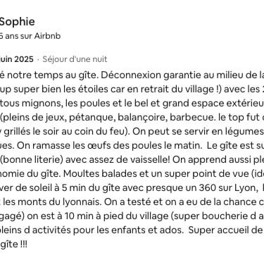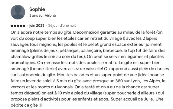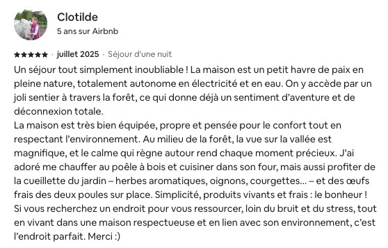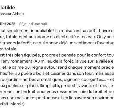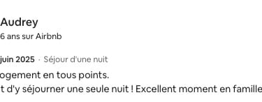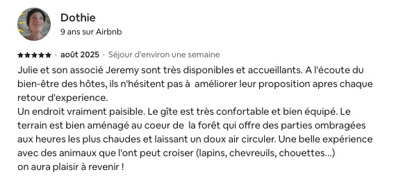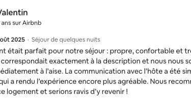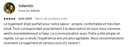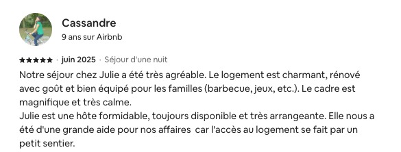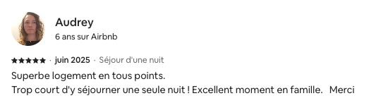 (avis issus de notre première page Airbnb, qui a malheureusement dû être fermée et nous avons perdu ses avis quand nous sommes passés sur une plateforme de gestion multi-sites).