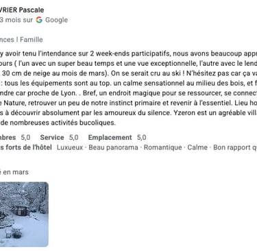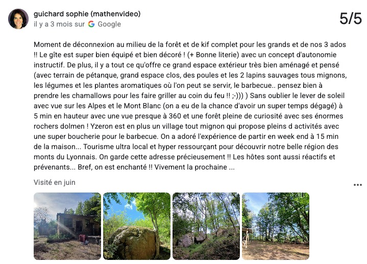 Venez découvrir notre gîte unique à moins de 45 minutes de Lyon et 800 mètres d'altitude, au cœur de la forêt d'Yzeron, le village le plus touristique de l'ouest lyonnais !