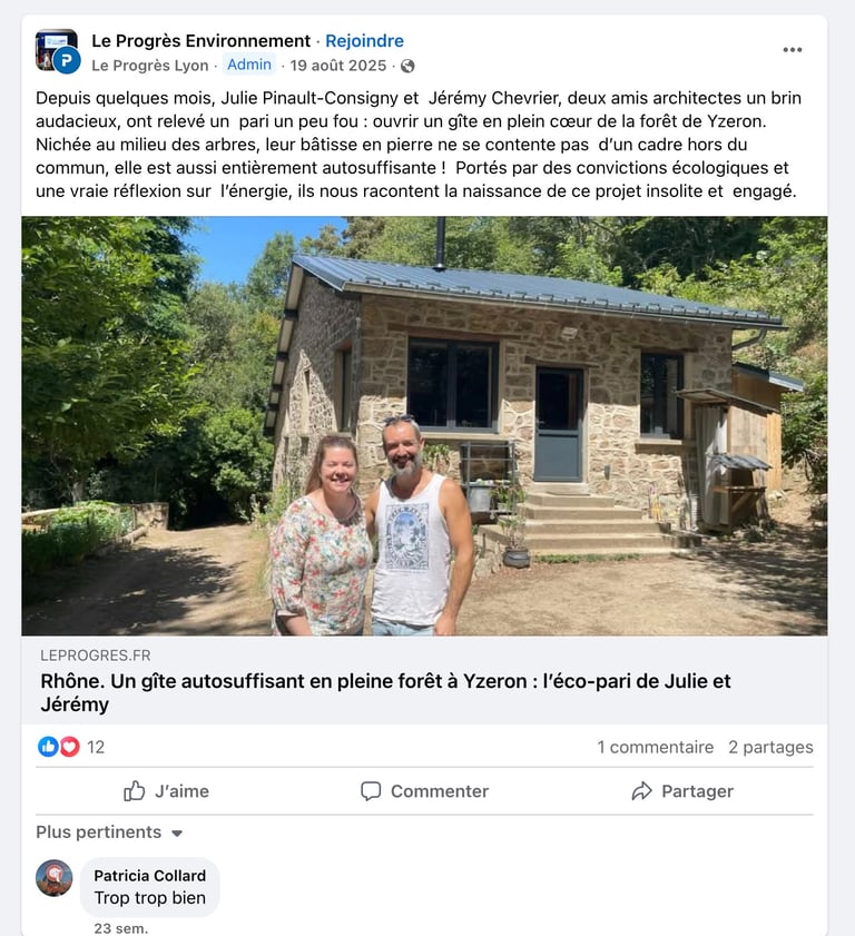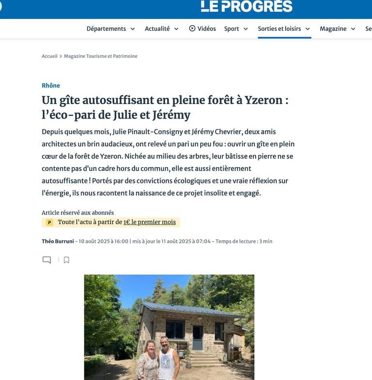 Merci à Théo Burruni, journaliste au journal, qui a pris le temps de venir nous questionner sur le projet du refuge d'Yzeron et de le mettre en avant sur le site du Progrès.